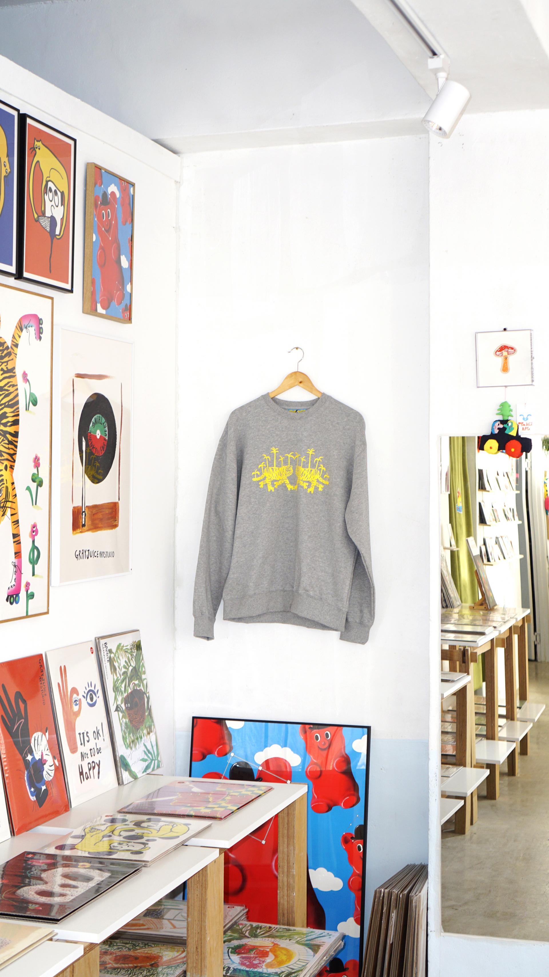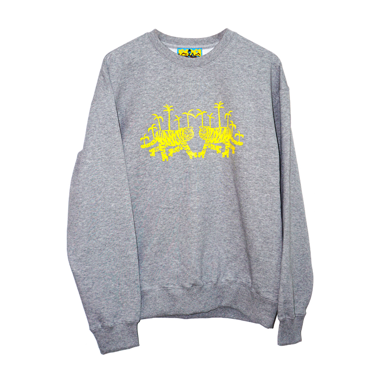 형광 옐로 컬러의 호랑이 그래픽이 선명하게 자리 잡은 맨투맨입니다.