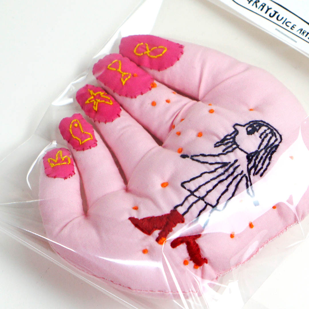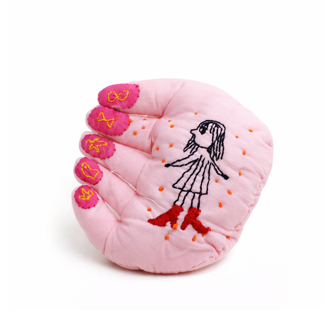 다시 재구성하여 자수로 완성한 손 형태의 오브제입니다.